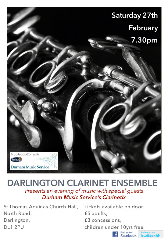 We are proud to be hosting another concert with Durham Music Service’s student clarinet ensemble Clarinetix! After such a fantastic response to the concert last year we have decided to organise another collaborative concert.