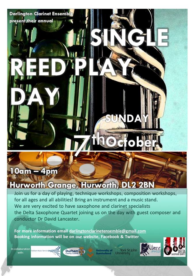 Clarinet and Saxophone playday will be Sunday 15th May at Hurworth Grange. Application forms are available Play Day Application Form.